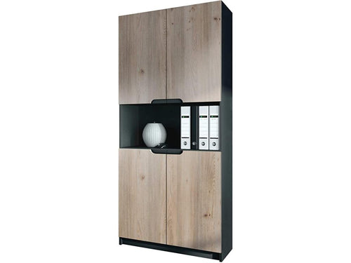 Nidchicshop Corner Desk - 2 Doors / 2 Drawers - Oak and Black 54298PLFI -